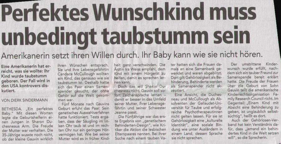 Perfektes Wunschkind muss unbedingt taubstumm sein
